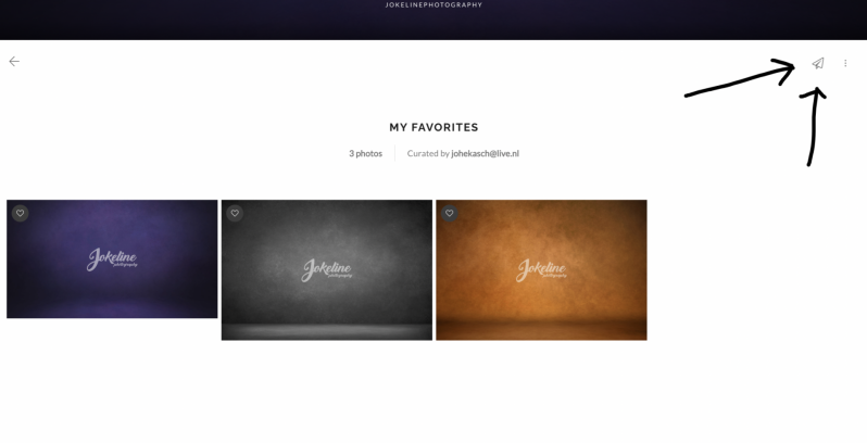 Stap 2: In de galerij kunt u alle onbewerkte foto's bekijken die tijdens de shoot zijn gemaakt. U kunt uw selectie maken door op het hartje boven de foto te klikken.