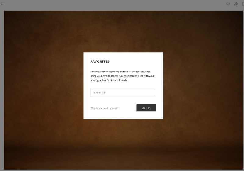 Stap 3: Voer uw email-adres eenmaal in om uw favoriete foto's op te slaan. Na invoering van uw email, zal het hartje van de geselecteerde foto grijs worden.